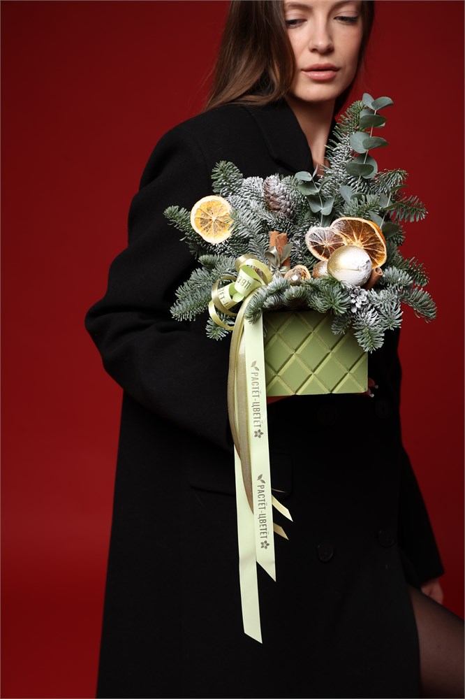 Зимняя композиция в ящике "Зимний аромат" (Размер S)